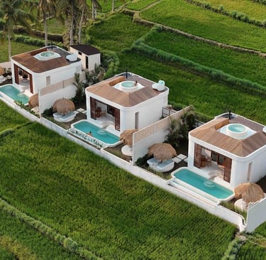 Find villa with a private pool located in the beautiful border area of Canggu with rice fields and beaches.